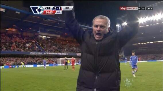 Радость дня. Жозе Моуринью празднует победу над "Ливерпулем"