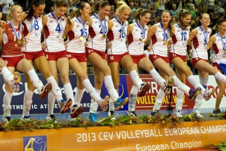 Женская сборная России по волейболу выиграла европейское первенство, в финале обыграв немецкую команду. @Sport.ru предлагает вашему вниманию яркие фотофрагменты победного матча...