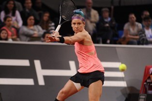 Впрочем, не только россиянки пожертвовали личными результатами во благо страны, та же участь постигла Сарру Эррани, ей не хватило сил, чтобы справиться с Бетани Маттек-Сэндс. Теннисная леди Гага, как окрестили Маттек-Сэндс болельщики, отметилась на немецких кортах также победой над Сабиной Лисицки в четвертьфинале, и, разумеется, своим внешним видом. Однако, на все её наряды и цвет волос, который отливался оттенками серебристо-сине-фиолетового, Ли На не обратила никакого внимания и бесцеремонно разделалась с американкой – 6:4, 6:3. Эта победа вывела китаянку в финал.