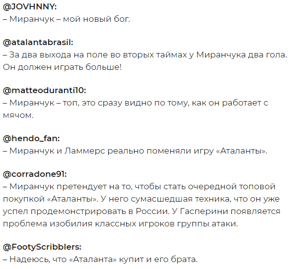 Болельщики "Аталанты" - о голе Миранчука "Интеру": "Лучший русский игрок, просто зверь". ВИДЕО