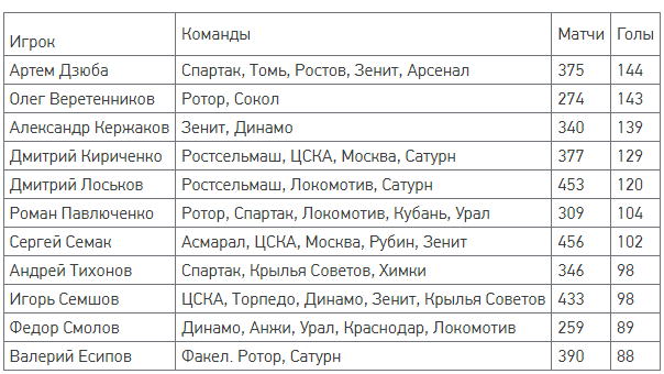 По данному показателю Дзюба вышел на чистое первое место в истории проведения турнира, обойдя Олега Веретенникова, в активе которого 143 гола в РПЛ.