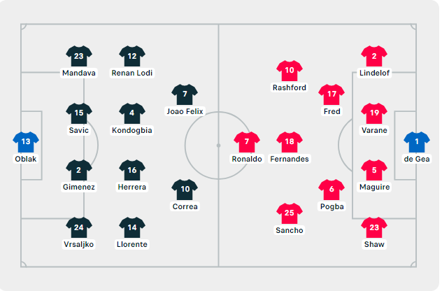 Эланга меняет Рэшфорда, а у "Атлетико" выходят Лемар и Гризманн. Ушли Феликс и Лоди.