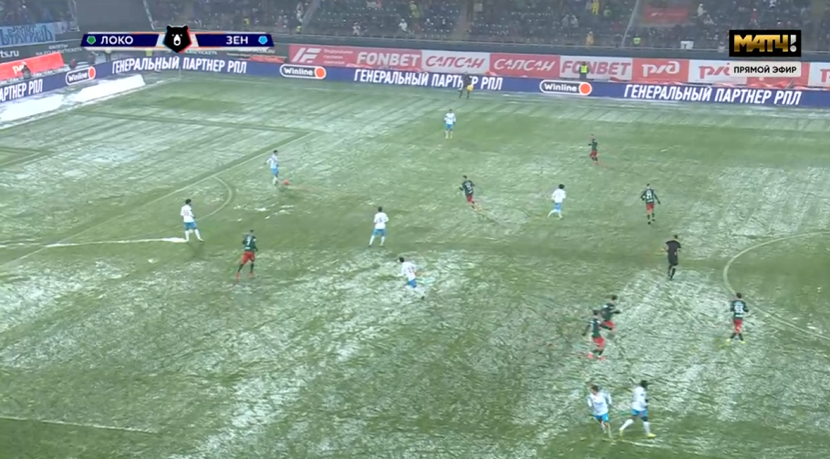 Никак не удаётся "Зениту" перевести игру на чужую половину поля. Пока очень спокойно "Локо" действует в концовке.