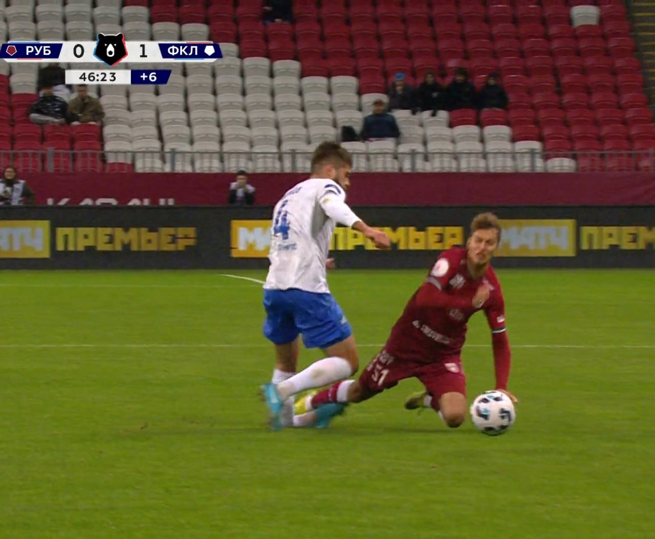 Калинин получил жёлтую. Хватал соперника за футболку он.