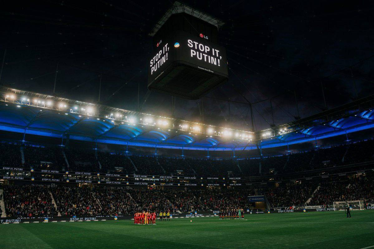 Перед началом встречи футболисты обеих команд провели антивоенную акцию. На табло, расположенном над полем, появилась надпись: "Останови это, Путин".