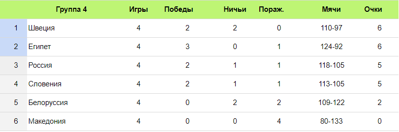 Если Словения обыграет Египет, то этот результат позволит России выйти из группы с первого места, а сами словенцы станут вторыми, при иных результатах с первой строчки выйдет Египет, а второе место достанется россиянам.