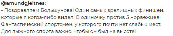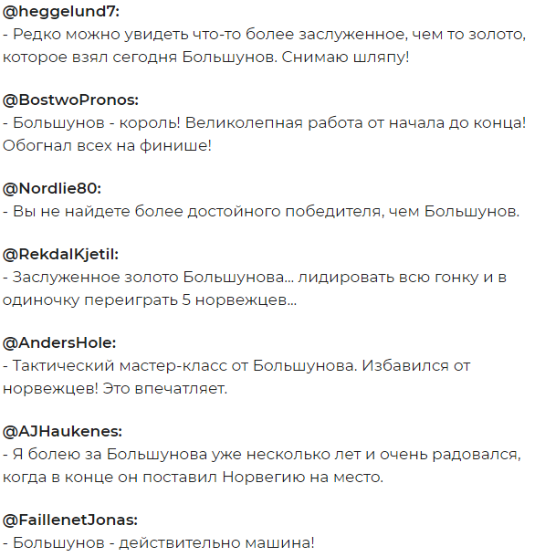 Сразу после гонки в Германии зарубежные поклонники лыжных видов спорта в западном сегменте Twitter устроили настоящую дискуссию, посвящённую успеху лыжника из России.