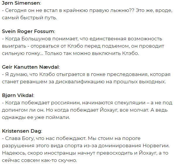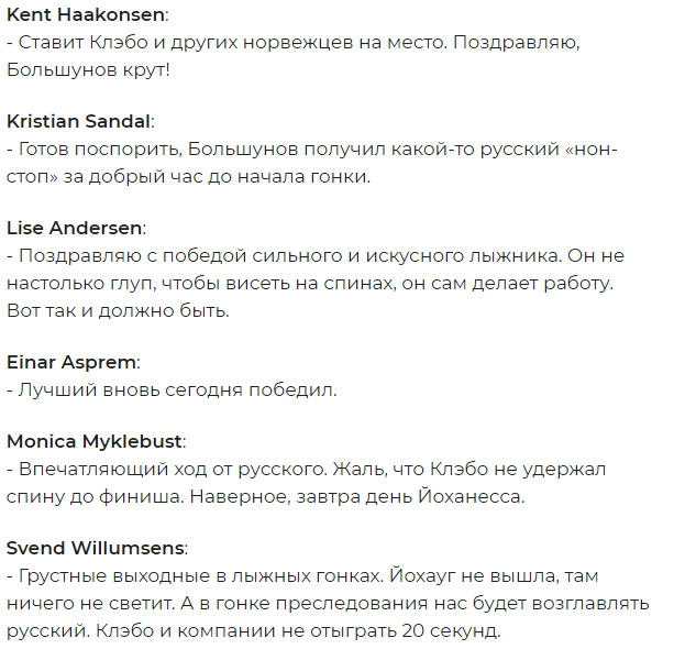 Норвежцы - о победе Большунова в Энгадине: "Клебо просто испугался обходить Большунова"