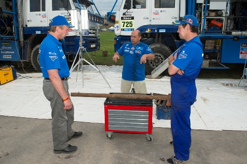 Этап стал логичным продолжением аргентинской части "Дакара". Мало отличавшийся от остальных спецучастков первой половины ралли сегодняшний быстрый раллийный доп прошел на одном дыхании. Наконец-то внятно заработала система отслеживания экипажей в режиме реального времени. Эдуард Николаев был первым на всех контрольных точках и в итоге выиграл свой первый дакаровский этап в жизни. После финиша пилот посетовал на то, что соперники были быстрее на прямых участках трассы и уходили от его "КАМАЗа", зато на рулежных участках он догонял их и тут уже использовал Sentinel (устройство подающее сигнал впереди идущему экипажу с требованием уступить дорогу. Согласно регламенту гонки, пилот, получивший такой сигнал обязан пропустить обгоняющего). Преимущество соперников на "прямиках" не связано с мощностью двигателей, сразу оговорился Эдуард, дело в электронной системе контроля скорости. Если на наших автомобилях пилот сам следит за тем, чтобы машина не превышала ограничение по скорости (пилоту об этом также делает подсказки механик), то у конкурентов за этим следит электронная система, своеобразный круиз-контроль. Естественно, что пилот перестраховывается, когда регулирует свою скорость только педалью акселератора, и поддерживает, например, 135-138 км/ч при ограничении в 140 км/ч. Более точная электронная система позволяет задать скорость 139 км/ч. В итоге, казалось бы, несущественная разница в 1-3 км/ч, дает на расстояниях в 500 километров (каким был сегодняшний спецучасток) приличное преимущество.