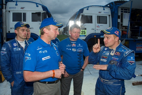 Продолжает радовать Дмитрий Сотников. Сегодня он второй сразу за Эдуардом Николаевым (+00:03:45). В пресс-центре коллеги из ASO-TV (телевидение гонки) живо интересуются: "Он очень быстрый, откуда он взялся?". Отвечаю: "Из Африки приехал! Вот вам буклет о команде – изучайте". Не сильно отстает и другой молодой пилот "КАМАЗ-мастера" Антон Шибалов. Именно с ним Дмитрий выиграл в прошлом году гонку "Африка Рейс". Если к его скорости добавить стабильность и умение быстро решать навигационные задачи, то к следующему "Дакару" его экипаж будет представлять собой уже грозную силу. По итогам семи этапов "Дакара" четыре камазовских экипажа расположились в турнирной таблице на 2, 3, 4 и 6 местах. 13 января ралли «Дакар» покинет Аргентину и после пересечения Анд окажется в чилийской Атакаме.