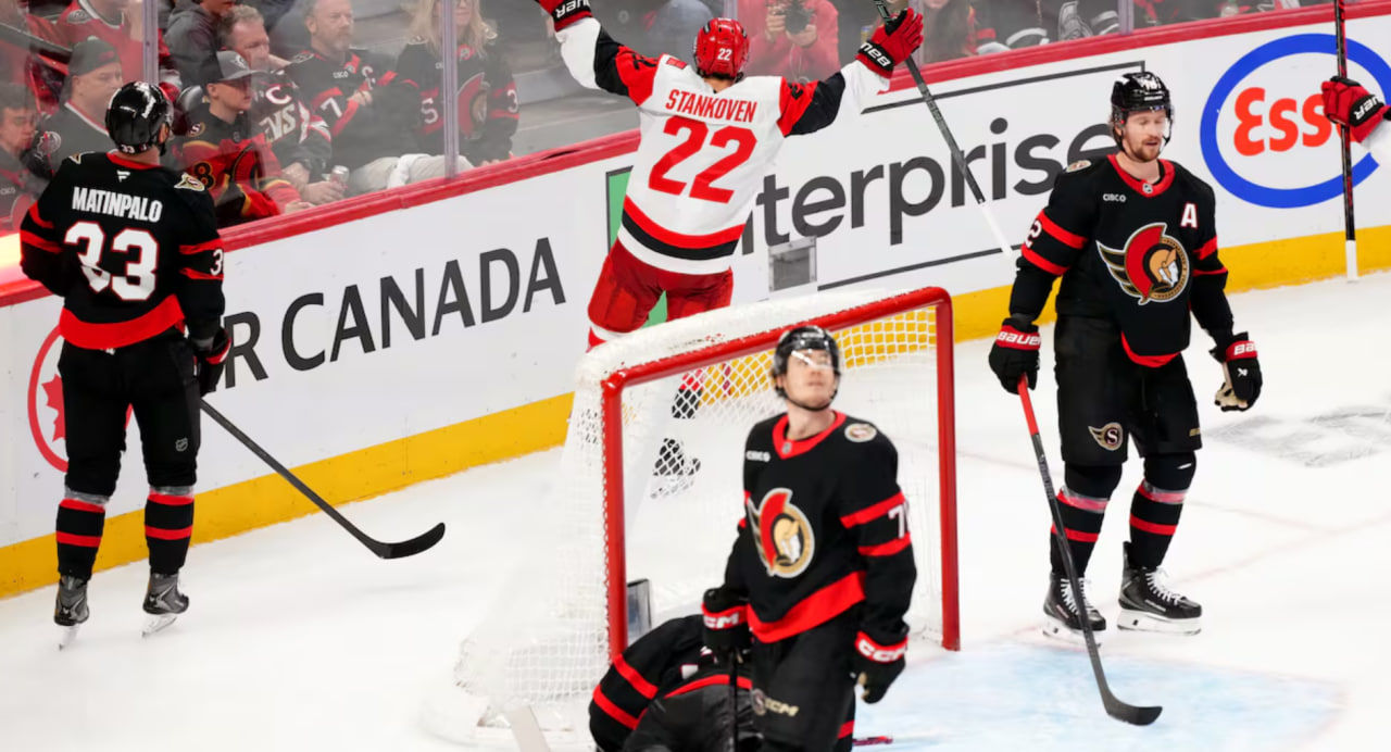 Sport.ru / Хоккей. Минувшей ночью определился первый четвертьфиналист розыгрыша Кубка Стэнли – 2026. Быстрее всего на старте плей-офф НХЛ завершилась серия между "Каролиной" и "Оттавой", а победителем из неё вполне ожидаемо вышли "ураганы".