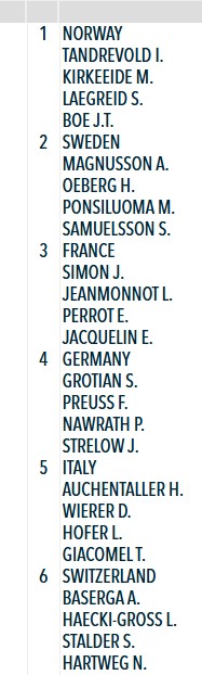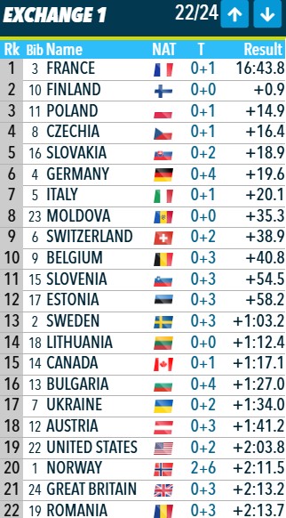 Передача эстафеты: Франция первая, Финляндия - вторая, Польша - третья.