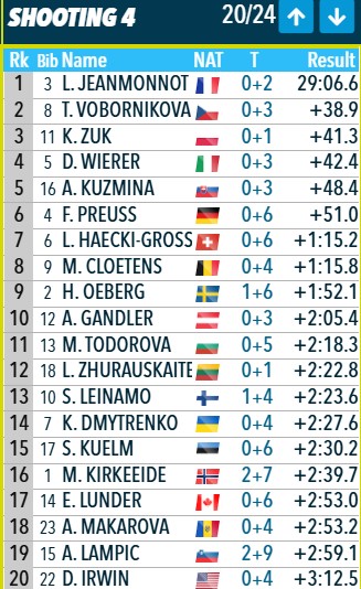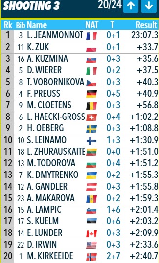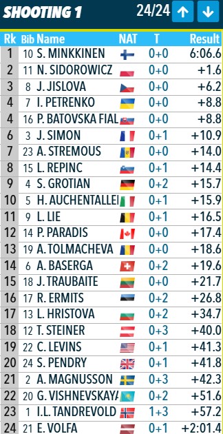 Минкенен отстрелялась на ноль и сохранила лидерство.
