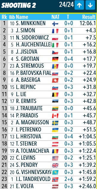 Минкенен из сборной Финляндии отстрелялась точно и вышла первой.