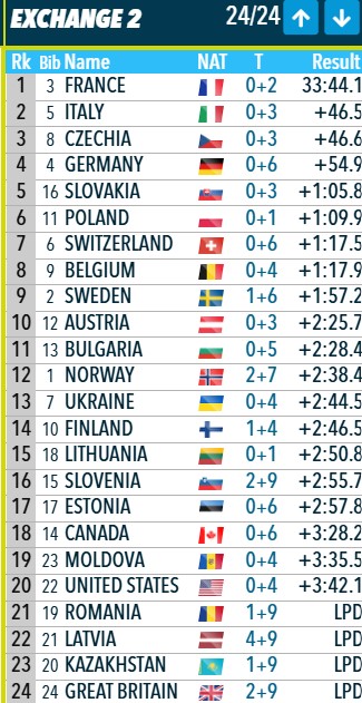 Подавляющее преимущество Франции, сенсация от Чехии. Норвегия с двумя кругами едва не забрала бронзу, а Швеция с кругом зашла в топ-5.