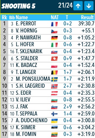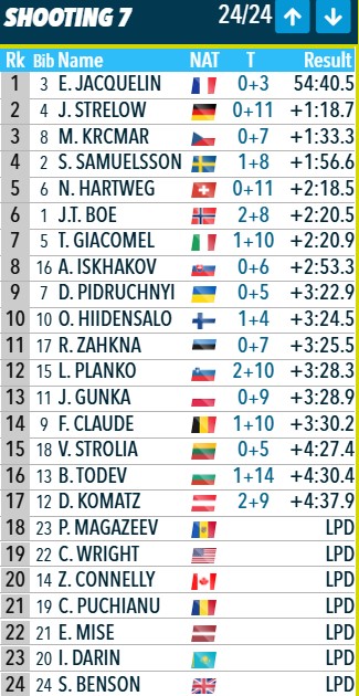 Один промах у Крчмара, а вот Джакомель уходит на круг! Понсилуома выходит на 4-е место.