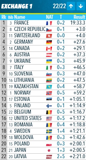 Франция выиграла эстафету на ЧМ по биатлону, Йоханнес Бё прервал серию из 13 побед подряд