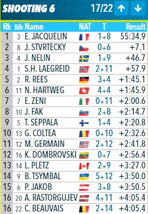 Снова на стойке проблемы. 1 круг у Жаклена, 2 патрона у Ствртецкого, 1 круг у Легрейда. Норвегия сегодня может остаться без золота.
