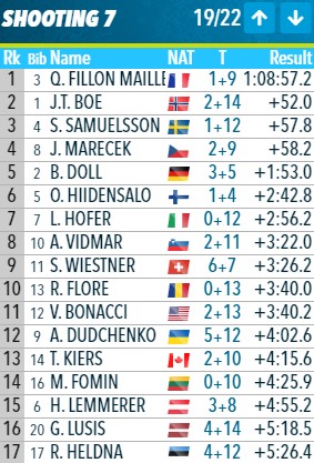 Три патрона у Кристиансена и он откатился на 15-е место, а Швеция ушла на круг! 19-е место у Фемлинга.