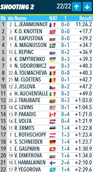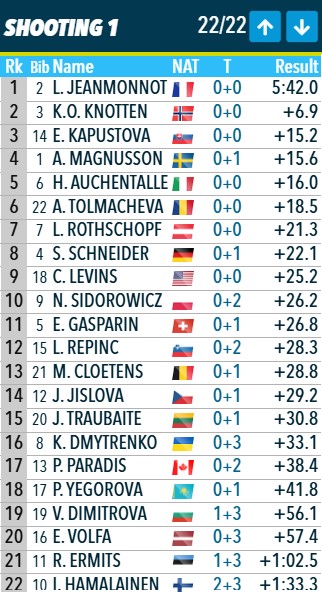 Жанмоно на 30 секунд оторвалась от Кноттен, на 41.5 - от Магнусон, на 44 - от Капустовой.