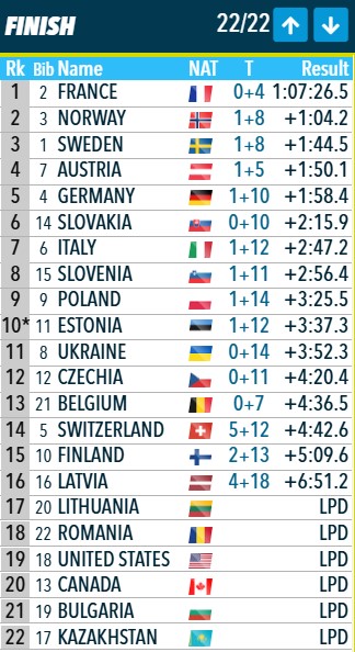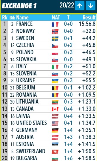 Передача эстафеты: Франция первая, Норвегия вторая, Швеция третья.