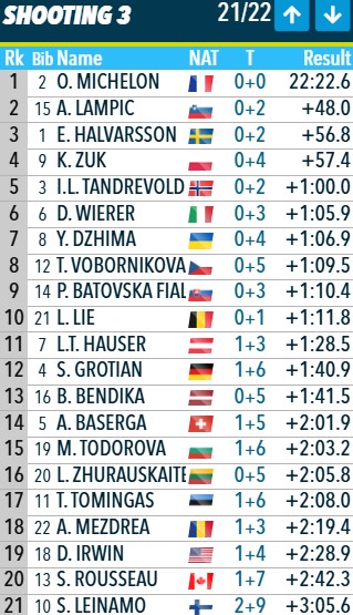 40 секунд Мишелон выигрывает у Тандревольд, 42 - у Фиалковой, 47 - у Хальварссон.