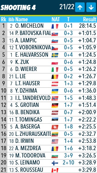 1 промах допустила Бреза-Буше и она осталась лидером.