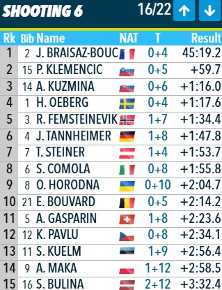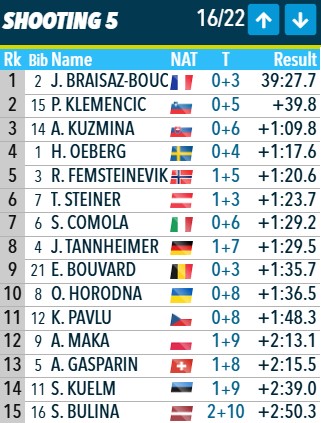 У Клеменчич снова точная стрельба и словенка ушла на трассу второй.