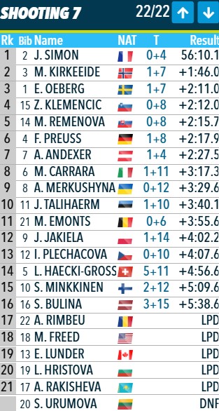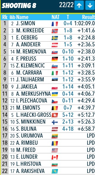 Симон стреляет точно и уходит на трассу первой.