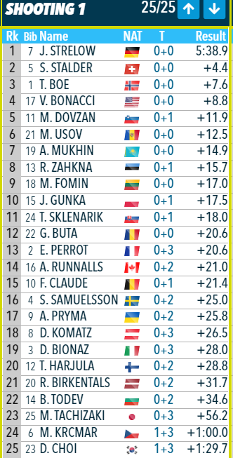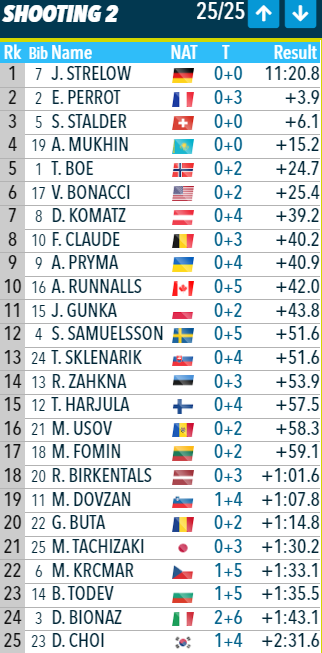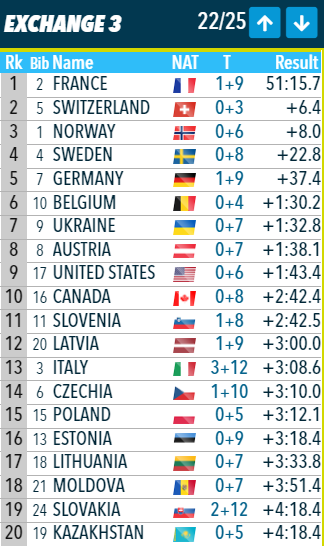 У Самуэльссона два патрона, а Бионаз использовал три. Швеция и Италия за пределами топ-10.