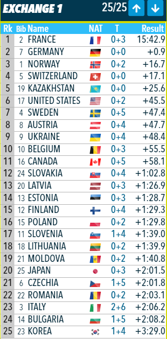 Передача эстафеты: Германия первая, Франция вторая, Норвегия третья.