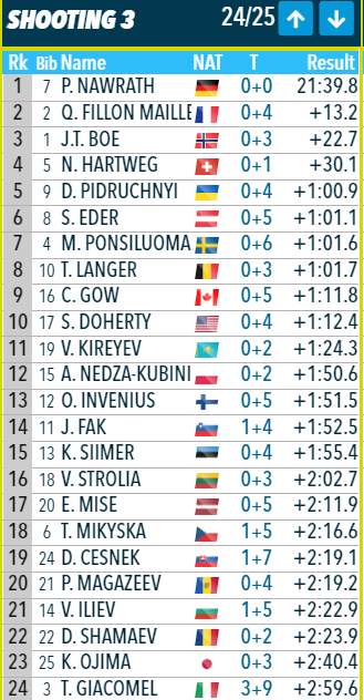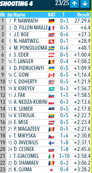 У Фийона Майе, Йоханнеса Бё и Хартвега по одному промаху, они сохранили свои позиции, но отставание стало больше.