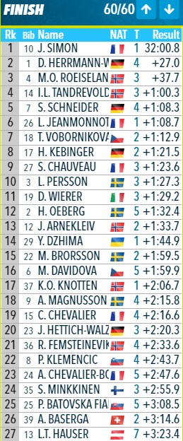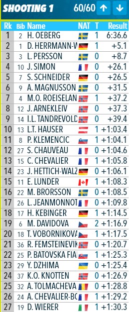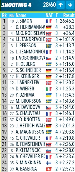 Промах у Симон, но она первая, так как у Херрманн сразу два промаха и теперь немка отстаёт на 28 секунд.