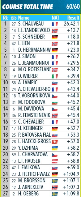 Херрманн идёт быстрее Симон и между ними 27 секунд. Аркенлев отстала уже на 42.