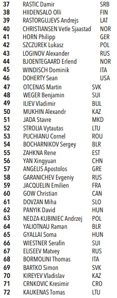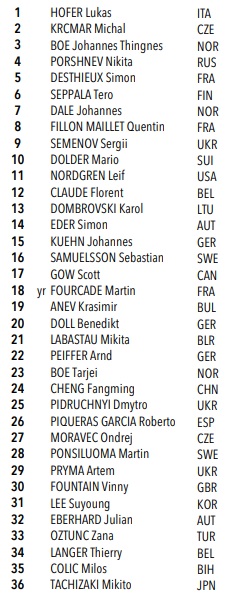 Продолжает удерживать промежучтоное лидерство Тарьей Бё. От него на 23.6 отстаёт Хофер, Крчмару норвежец "везёт" 24.3. Поршнев пока уступает больше 25 секунд.