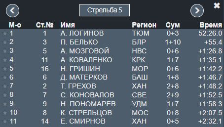 Логинов уже на втором рубеже третьего этапа. Преследователи только-только на подходе.