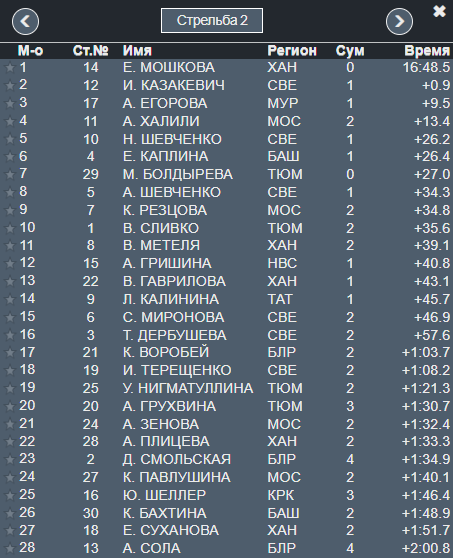 Приветствую Вас, уважаемые любители биатлона! Чемпионат России – трансляция из Ханты-Мансийска. Нам с Вами предстоит увидеть женский масс-старт. Сегодня на старт выйдут все сильнейшие, поэтому будет интересно. Гонку для Вас прокомментирует Даниил Чугунов. И пусть победит сильнейший!