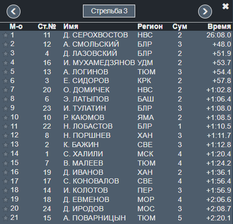 Смольский становится победителем масс-старта на чемпионате России по биатлону в Ханты-Мансийске