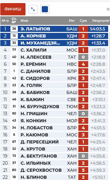 Корнев финишировал на промежуточном первом месте, Данилов - на втором.