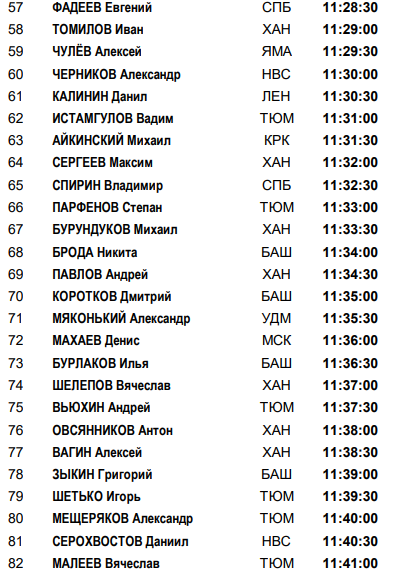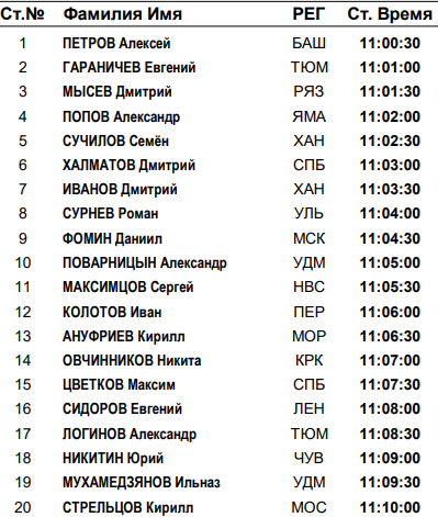 Сейчас ушёл 10-й номер со старта, а после первой отсечки Гараничев опережает Петрова на 3 секунды