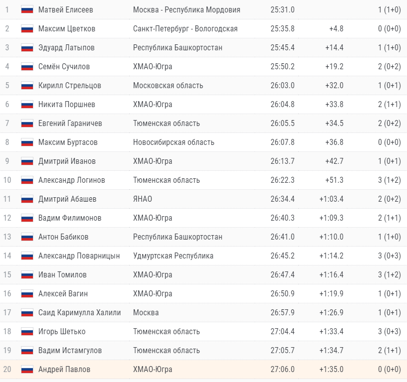 Браво, Матвей Елисеев! На 4 секунды он опередил Максима Цветкова! А ведь у Матвея был один промах на первом огневом рубеже...
