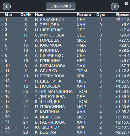 Приветствую Вас, уважаемые любители биатлона! Чемпионат России – трансляция из Тюмени. Нам с Вами предстоит увидеть женский масс-старт. Сегодня на старт выйдут все сильнейшие, поэтому будет интересно. Гонку для Вас прокомментирует Даниил Чугунов. И пусть победит сильнейший!