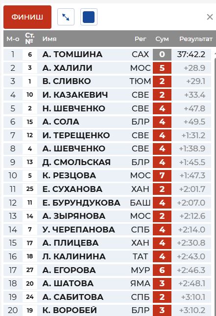 21.03.2026, 22:00 Биатлон. Чемпионат России. Тюмень. Масс-старт. Женщины. Прямая трансляция БиатлонЧемпионат России (биатлон) 12.5 км. Источник: Sport.ru Чемпионат России Обновлено: 21.03.2026 23:02:35 Обновить Трансляция начнётся 22.03.2026 в 11:45. Материалы по теме:Халили выиграл масс-старт на чемпионате России в Тюмени, Латыпов - второй21.03.2026 11:09:24Сливко ответила на обвинения в лицемерии11.01.2026 12:34:15Напарница Дальмайер раскрыла новый нюанс трагедии: "Если бы не это, она вернулась бы живой"02.08.2025 17:55:51Стало известно содержание завещания погибшей биатлонистки Дальмайер31.07.2025 09:57:51"Лучше заниматься своим делом". Тихонов отреагировал на смерть Дальмайер31.07.2025 09:21:16 Другие новости:Госдума приняла поправки Путина о возрасте выхода женщин на пенсию26.09.2018 13:19:19На Западе прозвучало неожиданное заявление о принадлежности Крыма19.08.2025 13:48:06