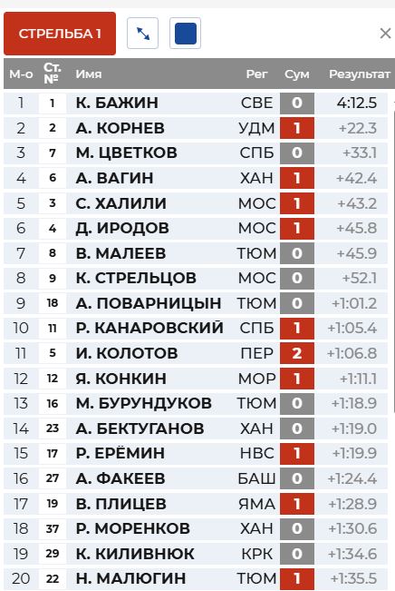 26.03.2026, 00:36 Биатлон. Чемпионат России. Уват. Суперпасьют. Мужчина. Прямая трансляция БиатлонЧемпионат России (биатлон) Квалификация + гонка. Источник: Sport.ru Чемпионат России Обновлено: 26.03.2026 02:42:39 Обновить Трансляция начнётся 26.03.2026 в 10:00. Материалы по теме:Латыпов выделил лучшего биатлониста сезона 2025/202625.03.2026 17:42:58Сливко ответила на обвинения в лицемерии11.01.2026 12:34:15Латыпов выиграл Кубок Содружества 2025/202624.03.2026 20:08:15Напарница Дальмайер раскрыла новый нюанс трагедии: "Если бы не это, она вернулась бы живой"02.08.2025 17:55:51Стало известно содержание завещания погибшей биатлонистки Дальмайер31.07.2025 09:57:51 Другие новости:Доктор Мясников обозначил несколько способов снижения артериального давления без таблеток16.01.2026 13:04:22Китайские поставки грузовиков в Россию сократились на четверть20.12.2025 10:07:31