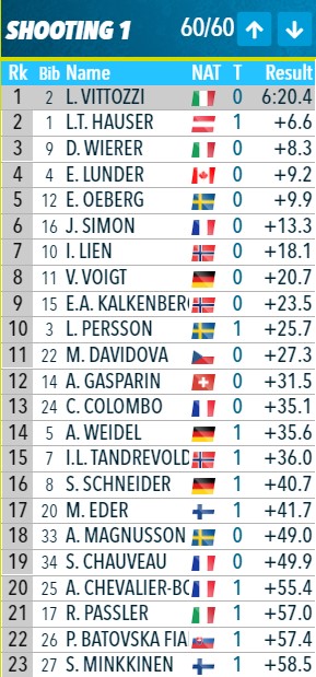 В топ-10 также попадают Витоцци, Лундер, Коломбо, Давидова, Фогт, Хаузер и Ханна Эберг. Гонка завершена.