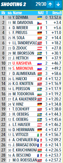 По одному промаху у Кайшевой и Мироновой, выходят на трассу на 10-м и 11-м месте.