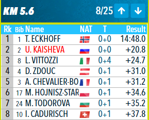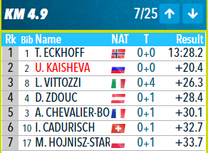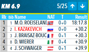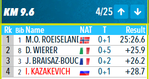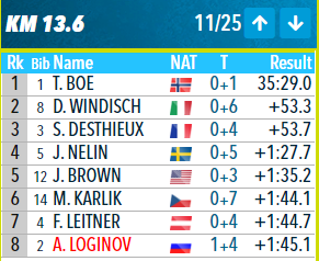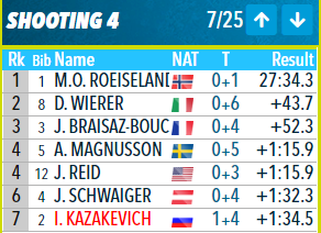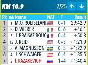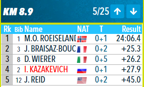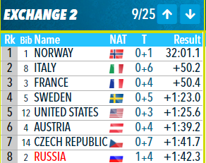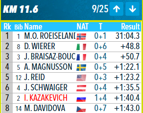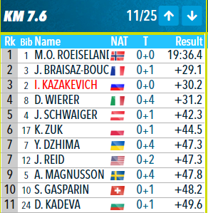 И снова проблема со стойкой у наших ребят… Тут даже комментировать нечего, мы сами себя закопали. Кайшева – молодец, отработала чисто, намного лучше того, что было в индивидуальных дисциплинах. Казакевич винить не стоит, она отработала так же как и всегда. Всем было известно, что весь сезон Ирину штормит на стойке, но всё равно поставили в эстафету. Но и тренеров можно понять, у них почти не было выбора. Разочаровал Саша Логинов, который может и должен работать лучше. В следующем году Олимпийские игры, а тут происходит это… Эдик просто докатывал свой этап, потому что все шансы на борьбу за медаль были потеряны. Оценивать его работу в этой гонке, думаю, не стоит. Итог – мы провалили эту эстафету.