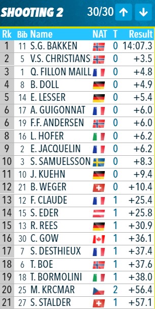 19 человек отстрелялись точно. Баккен, Эдер и Клод в лидерах.