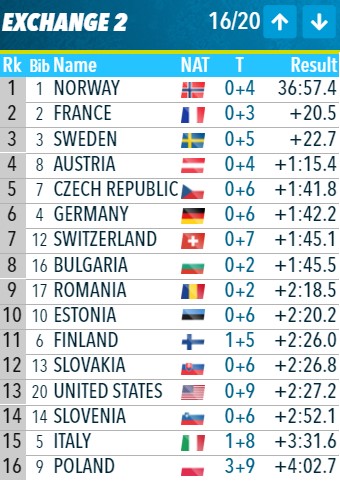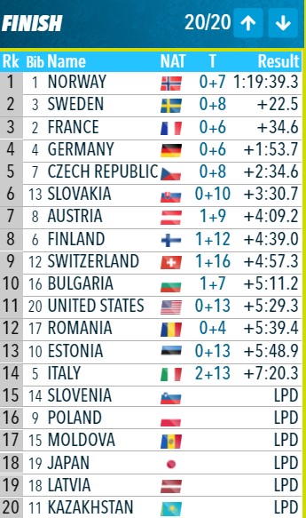 Финиш. Норвегия первая, Швеция - вторая, Франция - третья. Гонка завершена.