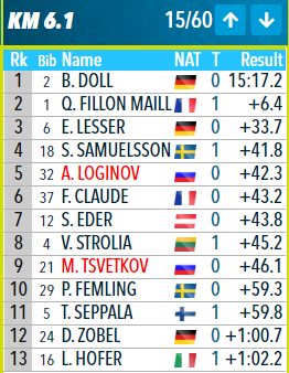 Стартовые номера на пасьют:21. Максим Цветков 1:06